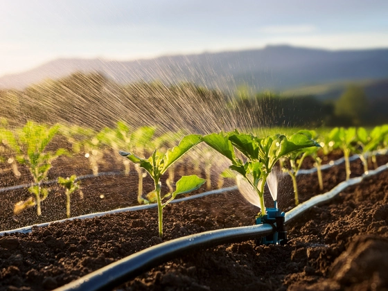 El sistema de riego por goteo aplica agua directamente en la base de las plantas, minimizando la evaporación y optimizando el consumo hídrico.