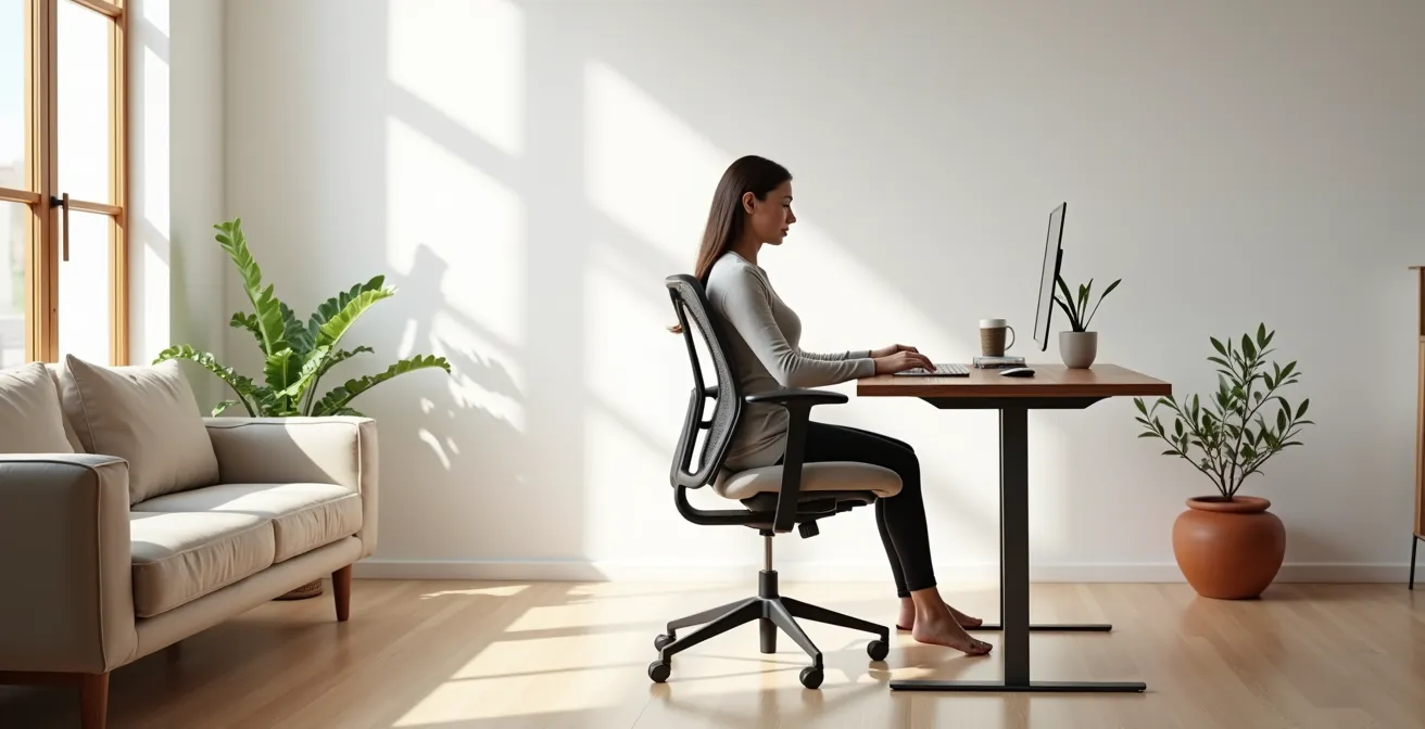 La comodidad aparente del sofá es una trampa para su columna vertebral. Trabajar desde una superficie blanda y sin soporte obliga a su cuerpo a adoptar posturas forzadas que generan una tensión muscular constante, especialmente en las zonas lumbar y cervical. Este hábito, aparentemente inofensivo, se traduce en un coste económico y de salud muy real. En España, el precio de una consulta de fisioterapia oscila entre 30 y 50 euros por sesión. Una visita mensual para aliviar dolores recurrentes puede suponer un gasto anual de hasta 600 euros, sin contar el impacto en su calidad de vida.