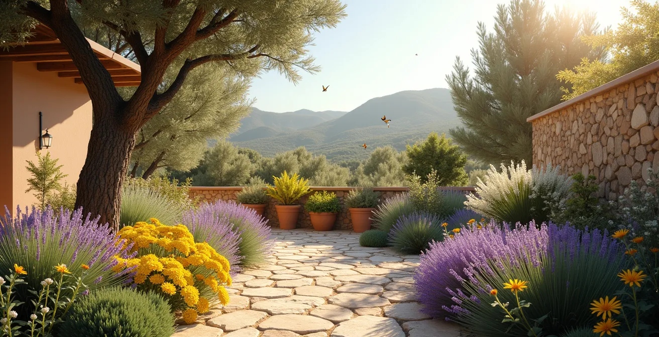 | Mediterráneo Litoral | Romero, Cistus | Lavanda, Santolina | Olivarda (Dittrichia viscosa) | Durillo, Algarrobo |